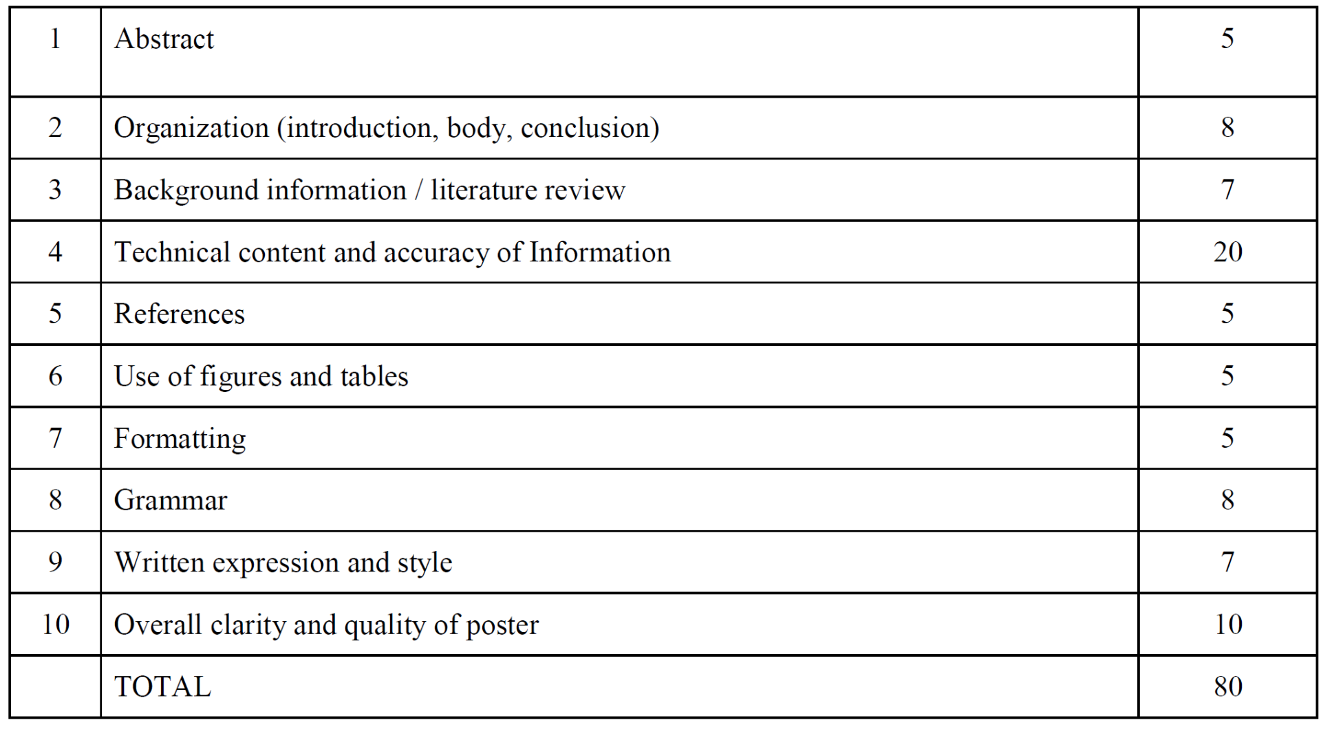 Judges will evaluate and score the poster using the maximum point values shown below: